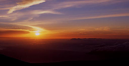 ハレアカラという3千メートルの山のてっぺんから見る日の出です。吹き飛ばされそうなぐらいの強風でした……でも最高です!