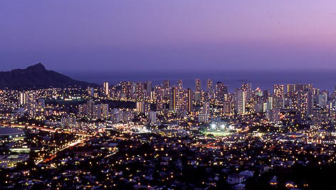 タンタラスの丘というところからのワイキキの夜景です(夕方というべきか?)。宿はこのすぐ下なので似たような景色が見えました♪左の山がダイアモンドヘッドです。もちろんここにも日本人ツアー客が来ました(笑)ただの山道の路肩なんですけどね。