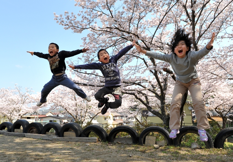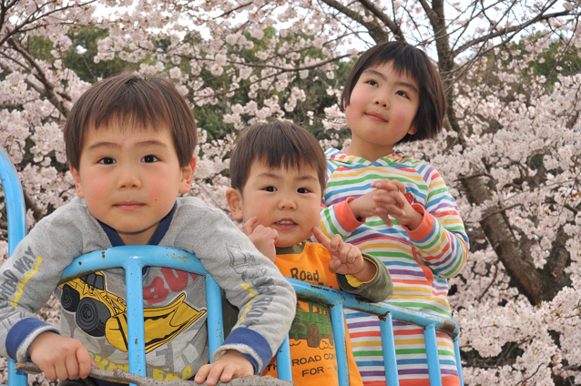 町内の公園のサクラが満開っぽいので家族で「お花見」