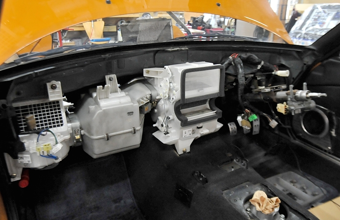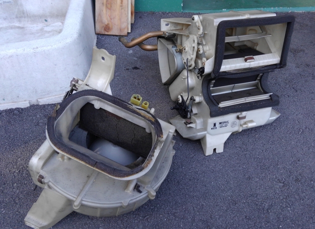 左から新品のブロアモーター、既存のエアコン、新品NB用ヒーターユニットです。