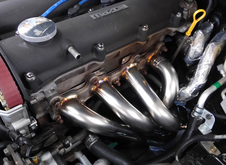 このエキマニ、パイプ径は45なんです、市販品には無いでしょ?(微笑) 出口は60。太すぎじゃないって? いやいやそうとも言えないようですよ(微笑) 昔のAE86は出口70とからしく~ テンロクで。