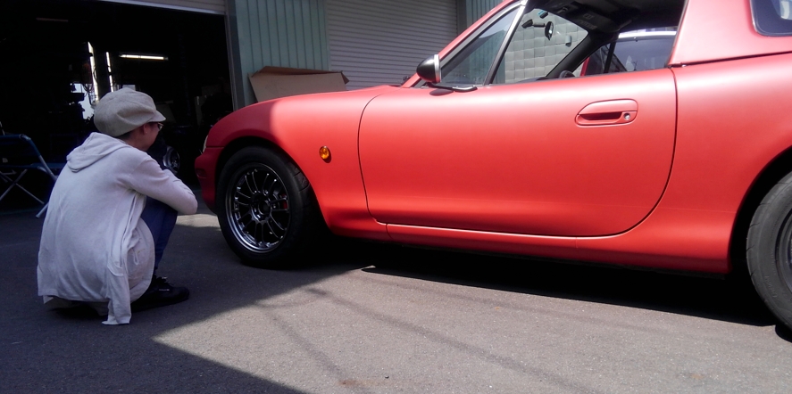 彼が知りたかったのはこのホイルがNBのいわゆる16インチ仕様に装着できるかどうかってこと。