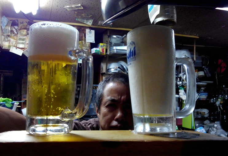 この時点で18時、今日のガレージは気温30度ですが湿度がずっと70%あって蒸し暑い……汗だくです。18時は晩飯タイム。ビール1本飲んで晩飯……もう疲れたけど……エンジン積みたい!