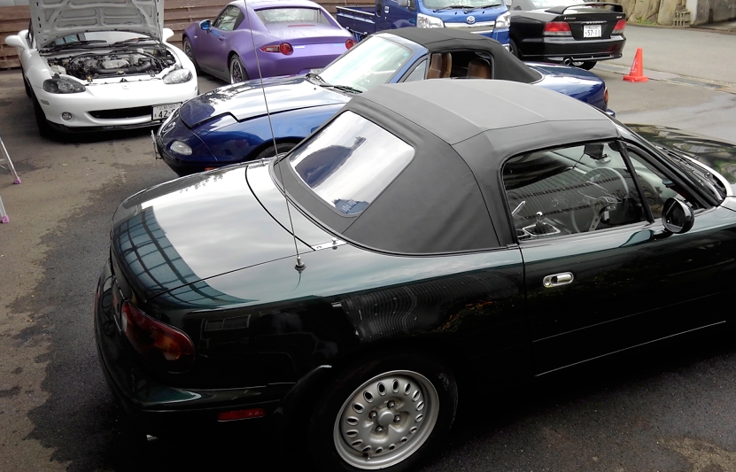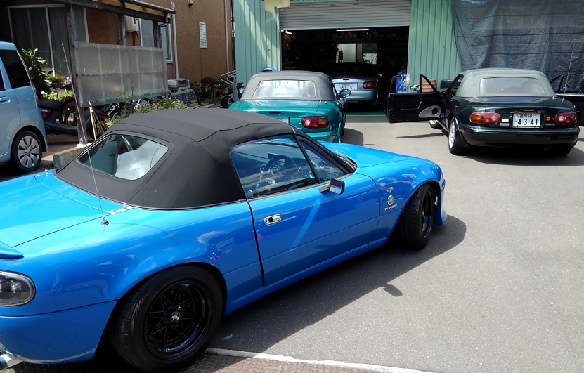 さて今日は3台引き渡しです! ふぅぅ~って感じ。手前のNA8は21万キロ、隣の紺のNA6は13万キロ、奥の白のNBは7万キロ。みなさんピカピカです、愛情を感じますね!