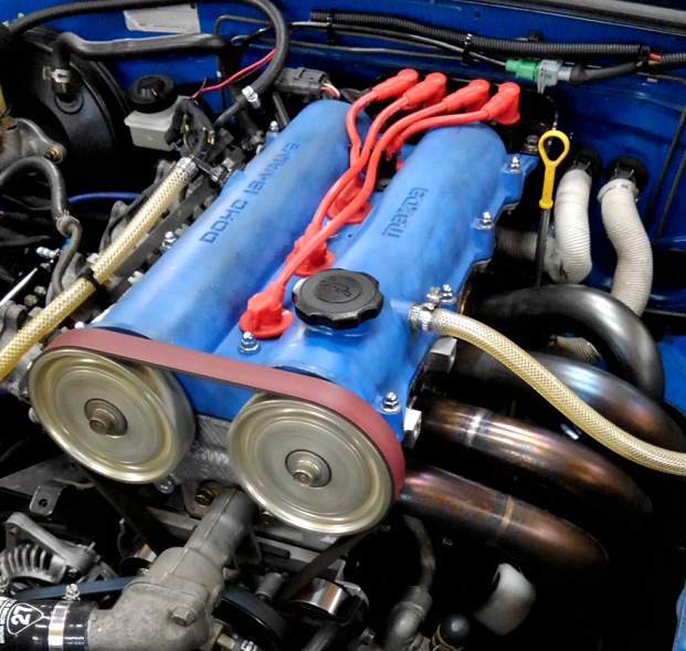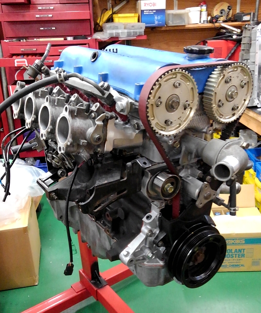 タイミングベルトを装着してバルタイ調整。前回、調整は合っていましたがバルタイの選択ミスをしていて(汗)実は全然オカシイ数値で走っていたのです……あれで良くフンギリできたよね……みたいな。