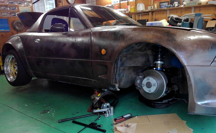 昨日、緊急入庫したVRリミはサイドシルの鈑金修理です、なので本日早速鈑金屋さんへ持ち込みました。窓を開ければ涼しい風が心地良い、エアコンも要りません。あ~良い季節になってきたなぁ~ こうなると早くマイNAを走らせたくなります! でもまだエンジンは完成せず(苦笑) モンモンモン……