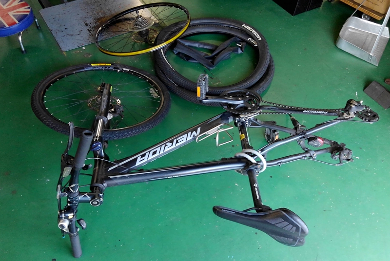 足を外してバラして掃除してる時に「もしかして?」と思う箇所を発見。検証するために細工を施しました。明日、バネを組んで乗って確認ですね。予想通りなら……