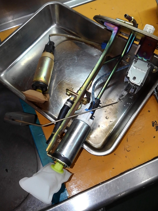 気になる電装品を交換しました。オルタネーター、スターター、点火コイル、そしてこの燃料ポンプ。