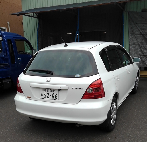 これはシビックですか? あんまし見た記憶の無い形だなぁ~ 何かサクラムマフラーの付いたクルマで来るのかな?と思っていたので拍子抜けでした(笑) 排気量はどのくらいですか?と聞くと「知らないんよ~ これ貰ったクルマでね~」と。興味無いことはどうでも良いんですね、私と同じだ(笑)