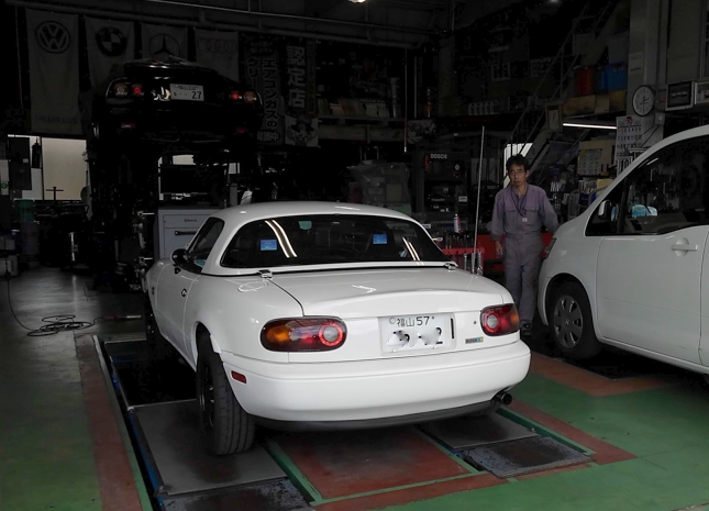 遠く長野県から入庫のNA、半年前にリフレッシュしたクルマです。今回はまだ手つかずで気になるパーツの交換で。1泊2日の日程です、オーナーさんは尾道観光へ~