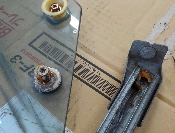 Aピラーのモールも交換します、ドロドロに汚れていました。これはお掃除後です。