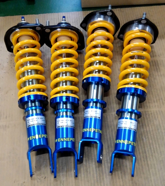 エナペタルの全長調整式♪ バネに関わらず自由な車高調整をするならコレがおススメです。NA、NBでは全長調整式はおススメしていませんでした、理由はケースの容量が足りないから。NDは全く問題ありませんのでおススメできます。将来的にバネが変わるとか車高を色々試したい人は特に。
