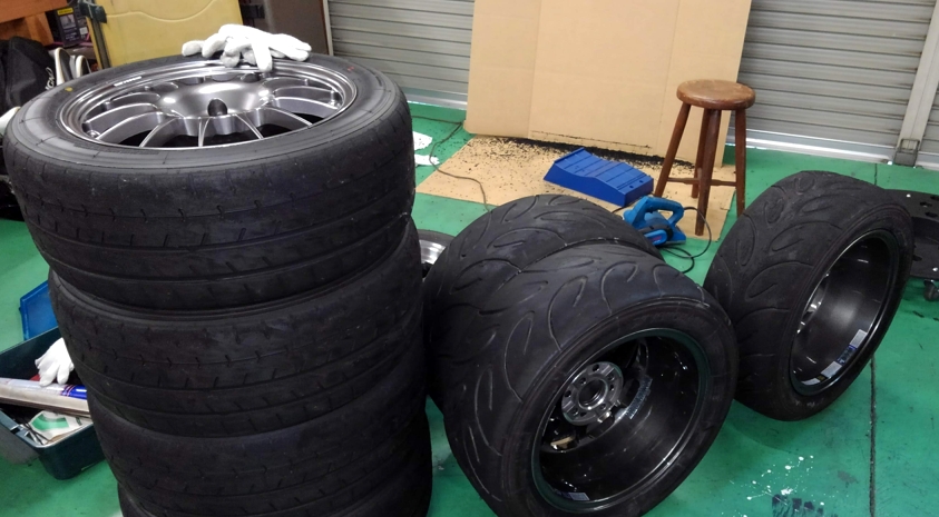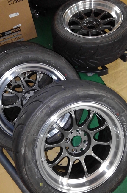 RFのタイヤが偏摩耗しているのでそろそろ交換時期。次は16インチにしたいなぁ~と思いつつホイルとタイヤで悩み中なんです。16インチは1セット持っていますがタカタ用のラジアルタイヤを装着しています、RFでサーキットを走る予定は当分ないのですがドクロ号でのラジアルアタックには使う可能性が大きいのでこのホイルはキープ。