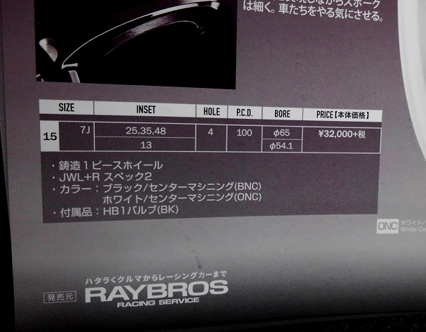 このホイルはまだ発売されていません(サイトには掲載されていますが)、春先かな?レイズのホイルは大抵納期が2か月くらい掛かりますので……早めの注文が必要です。私は自分用にオーダー掛けますのでどなたか注文を希望される方がいれば相乗りどうぞ!少しお得な価格カモ?(微笑)