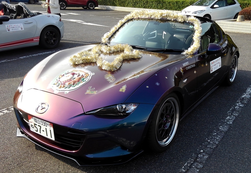 参加者はRCOJの会員とマツダの社員さんたち。NDの主査の中山さんや「藤原大明神さま」もロドスタのいちファンの立場で参加されていました。藤原さんはND乗りなんですよ、自走で軽井沢MTにも参加されています。今回、ドライバー役として立派な白ひげサンタ姿で楽しそうにドライブされていました。