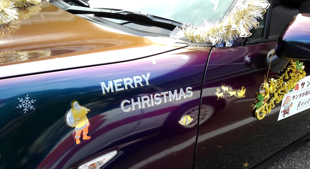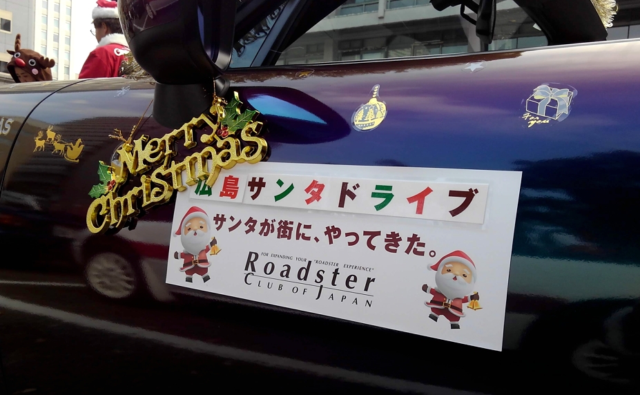 ドアにはマグネットで「広島サンタドライブ」をアピール。