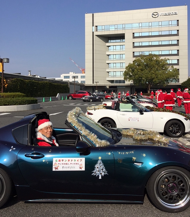 朝9時すぎに奥さんとマツダ本社に到着!今日は広島で初めての「サンタでドライブ」なんです。ヨコハマではもう10回目になるイベントらしく今回広島で初開催となりました。マツダからオカネを貰っているイベントではありません、1円も頂いていないそうです(ここ大事) 駐車場や会議室は使わせてもらっているだけ。