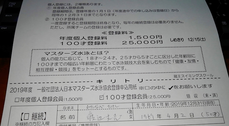 来年もスイミングは通います、2年目のマスターズ大会になるので記録を伸ばすように頑張らねば!