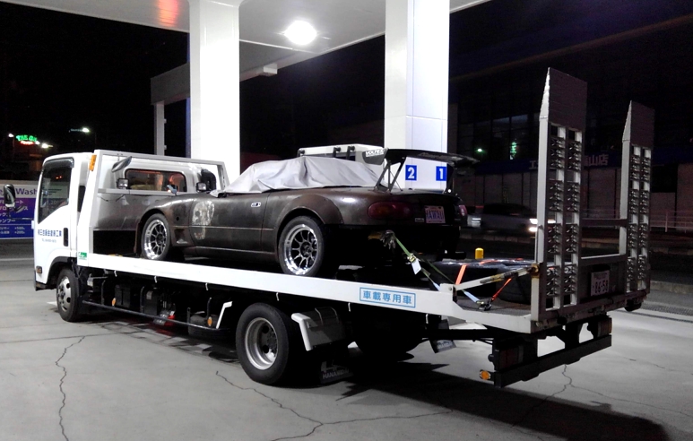 購入先はアイスタイリングです!石川社長に無理言って「マトモなハコなら外観はどうでも良い、エンジン無くても良いから何か無いですか?」という注文。シートも無かったんですが(無くて問題無かった)陸送の移動の時に椅子が無いと困るということで1つ付いてました(笑)