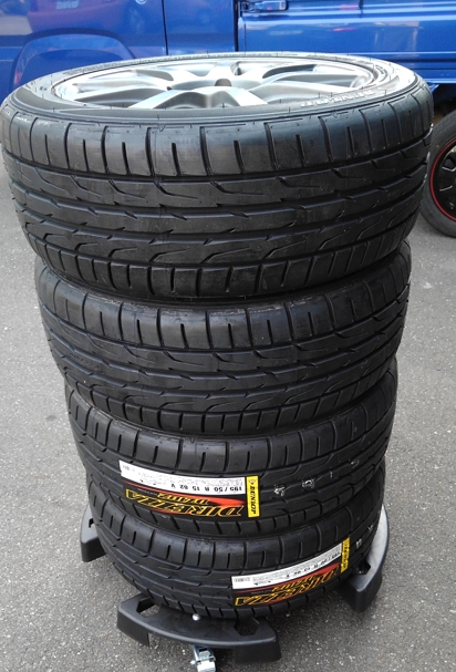 タイヤサイズは205/50/15で十分でしょうし。車重が軽いのでイケると予想。