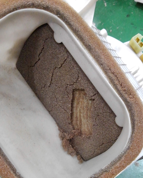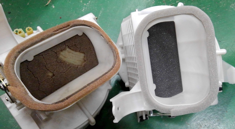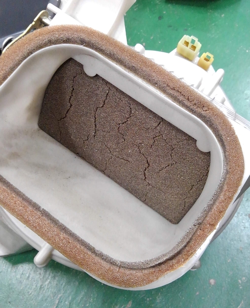 古いスポンジをスクレーパーでシコシコ削るんですよ、これだけで30分。これは同業者には理解されないかもしれませんね(笑) えぇ私が納得したいだけなんです、どれだけ時間が掛かっても費用は同じです(余分なことをしても追加しないという意味です、ネジ磨くとか、そういう類の事)