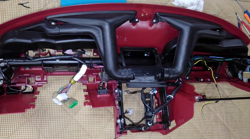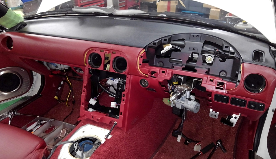 ダッシュ関連はほぼ終わりです。こんなにキレイな赤色の内装のクルマはもういないんじゃないかなぁ?