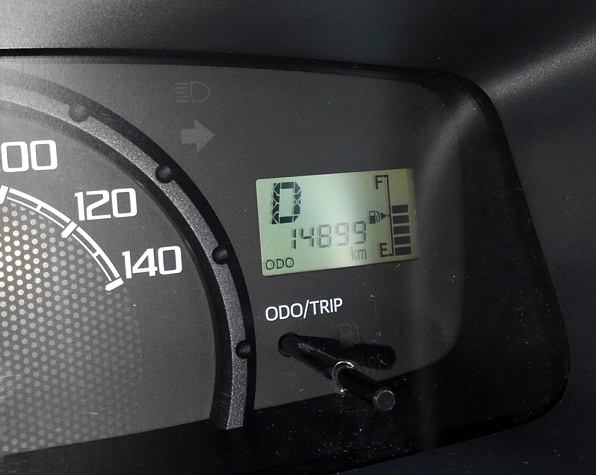 まだ15000キロ未満(微笑) 極上中古車です(笑) この車で市外にはほとんど出ませんからね~ 近所の買い物やスイミング通いがメインなので。2年前が6700キロでしたので2年で8千キロちょっと、1年4千キロ……まぁそんなペースでしょうね~今後も。