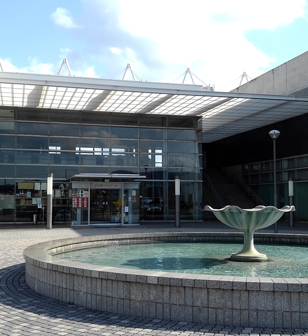 倉敷市の児島マリンプールです。目的は飛込みの練習です。今回は長男坊を連れてきたので話し相手にも困りませんし、長男坊は飛込みが上手いのでアドバイスも期待して。
