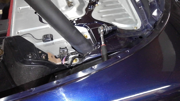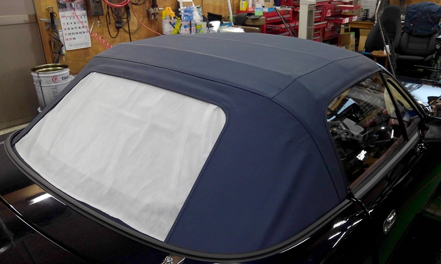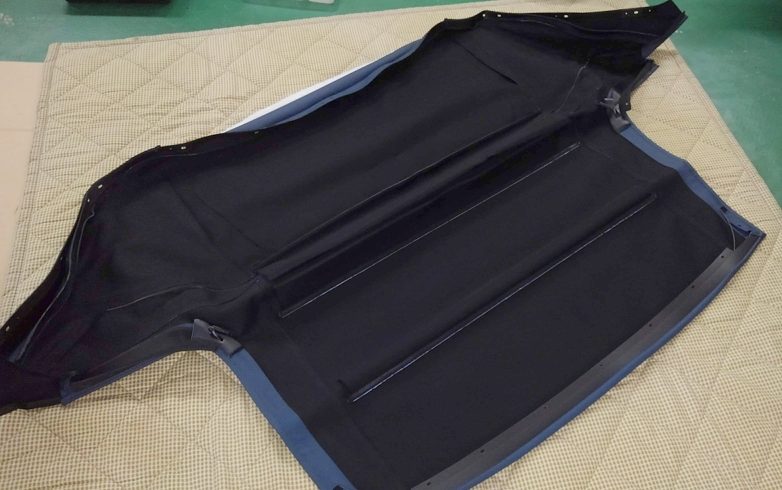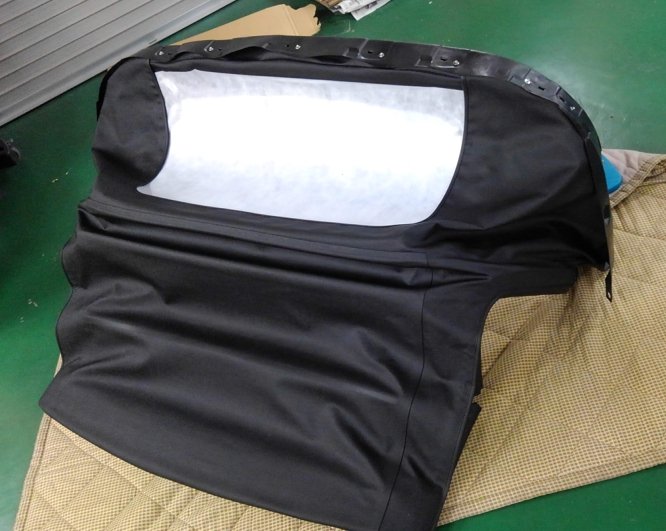 今回の幌はつい最近注文したものです。ですが……なんか違うぞ、これ。新しいのに小さい気がする。そう言えば先日、持ち込みで作業したNA幌ですがあれも復刻品ということが判明。てっきり「在庫品だからきつく」感じたのに……まさに今日の感触と同じです。