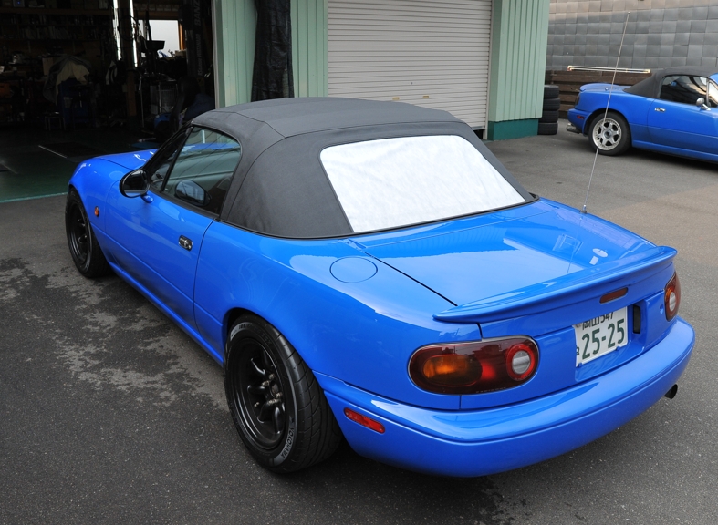 なぜそんなに遠くから?と言えば4年くらい前に「最後の」NA幌を購入してくれた1人なんです。販売した時に「当店での作業が前提です」と言ったんですよね、そして4年近く……もうウチじゃなくても富山ならオオミチさんが居るしそっちでどうですか?と打診しようかな~と思っていたら今回の連休でコッチ方面に来るので作業をして欲しいとのことでした。
