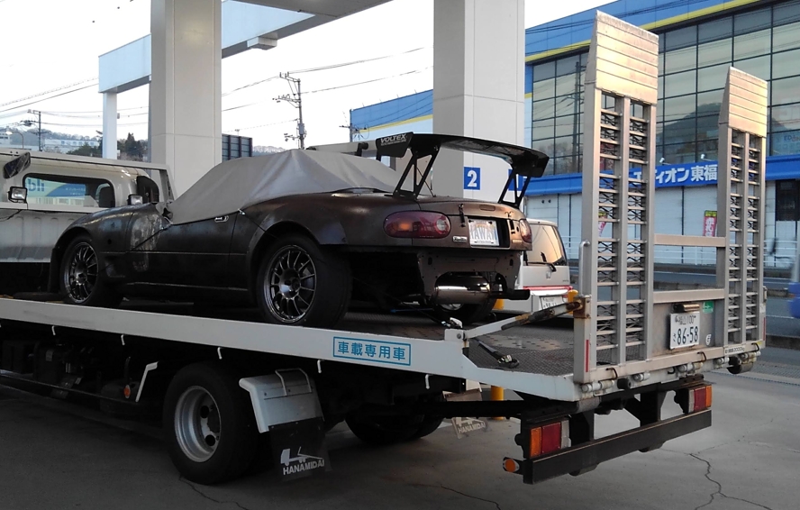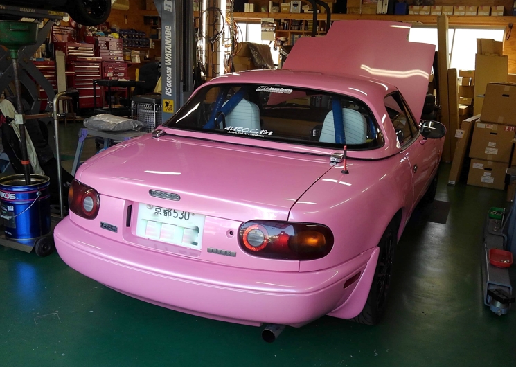 午前中はピンク号の作業をしつつ……ナンバーナシ号を引き取りに積載車でT氏が来たり、連休明けに某所に少しレンタルするNBを貸してもらう為にK氏が来店とか。すまないねぇ~少し借りるから。