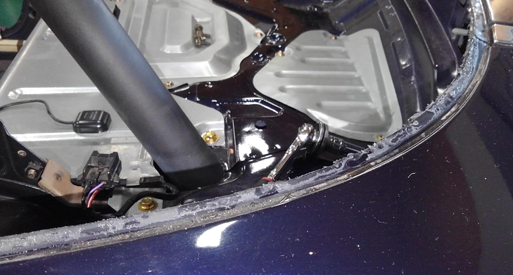 Aピラーのモールも交換しました、キャッチの取付けはこんな感じが「正しい」ですよ、モールが湾曲しているのをタマに見かけます……それは失敗してると思うよ、モールの取付けを。ここは未経験だとミスするかもね~