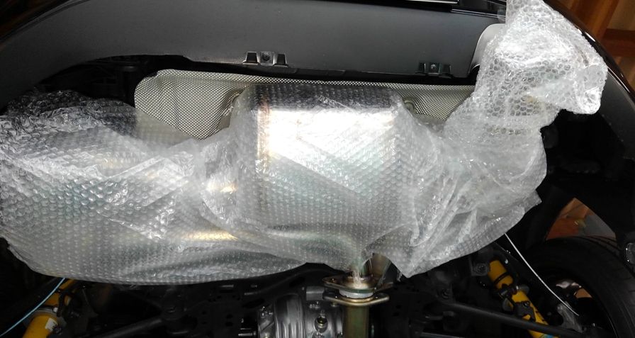 超高級マフラーなので取付けも慎重に……養生しているプチプチは最後に外します。