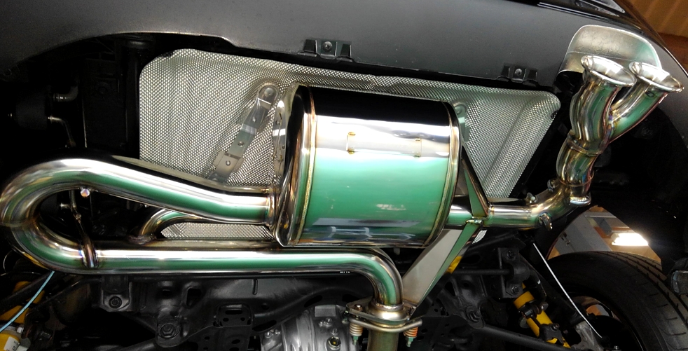 さて色んな意味で対照的なNDが来店! マフラー交換です。