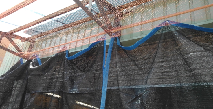 見た目がカッコ悪いのですが……秋まではこれで。黒いネットは遮光シートでもありますので真夏は涼しげです。見た目だけだけど(笑)