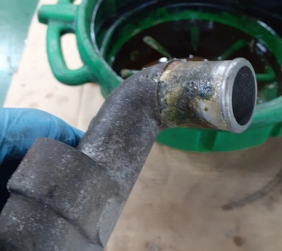 見事な水の流れの跡……おぃおぃ……幸い錆は出てませんが……このままってワケには行かないよねぇ~ オーナーさんに画像を送る……当然「修理してください」となりますよね、ハイ追加作業デス。