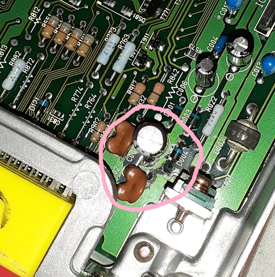 替えのECUが手元に無いので確認は出来ていませんが……まぁコイツでしょうね。こうなる前にECUリペアがマジで必要ですよ!皆さん。こうやってパンクすると基盤が侵されるので修復はNGになります。