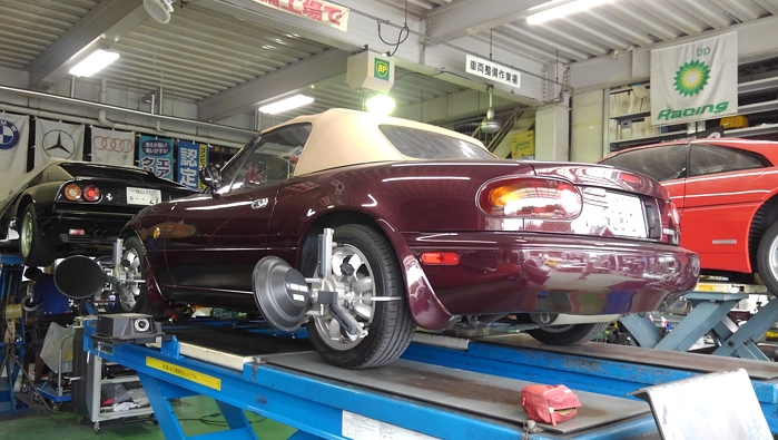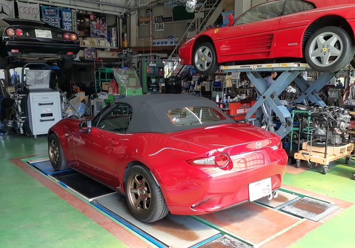 このNDは他店からの外注です。アライメント調整だけ依頼されました、たまには他店の仕上げたクルマに乗るのも面白いですね、何がどうとは書きませんけど(微笑)
