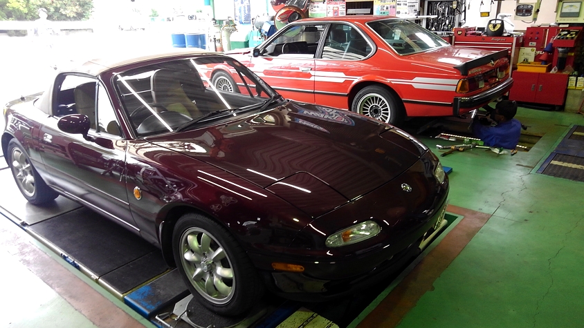 とりあえず車検のあがったNA8を引き取って帰宅、オイル交換予定のクルマは時間を繰り上げてもらい作業。そして16時半頃にもう1度小山自動車さんへ。