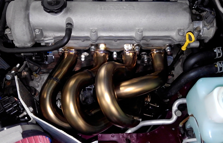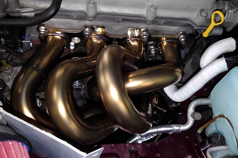 エキマニが良い色になってきましたね~ このクルマ、ノーマルエンジンでノーマル触媒、ノーマルマフラーです。乗ってみましたが拍子抜けするくらいフツーですよ。コイツを装着したから何かが激変!は無いです、ご安心を。つまり「特にサーキットを走るわけじゃないけど」と言われる方も大丈夫です。ミーティングでボンネットを開けて「どうよ!」と言うだけで十分じゃないかと(微笑)