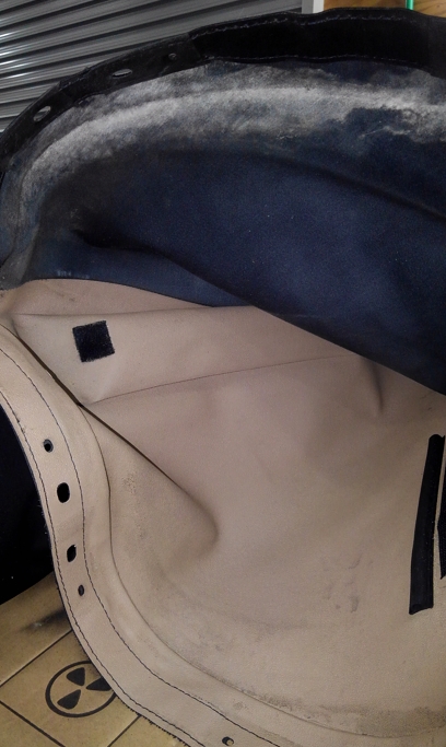 掃除もこのくらいが限界、黒い裏地もかなり頑張ったんですけどね~ 固形の汚れは落としました。しみ込んでいるのは無理……レインレールは新品に交換します、しばしお待ちを。