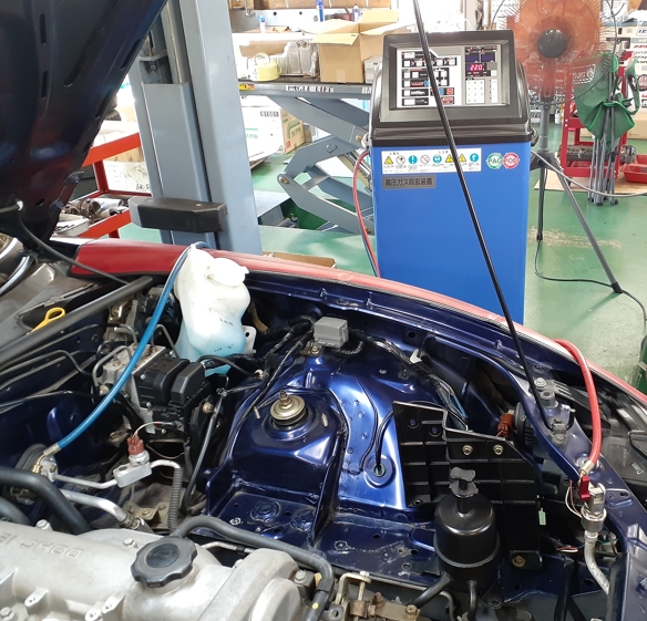 エアコンガスのメンテも。残りは半分でしたね~ 満タンにしておきましたので。