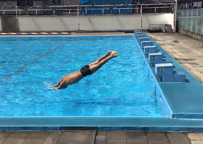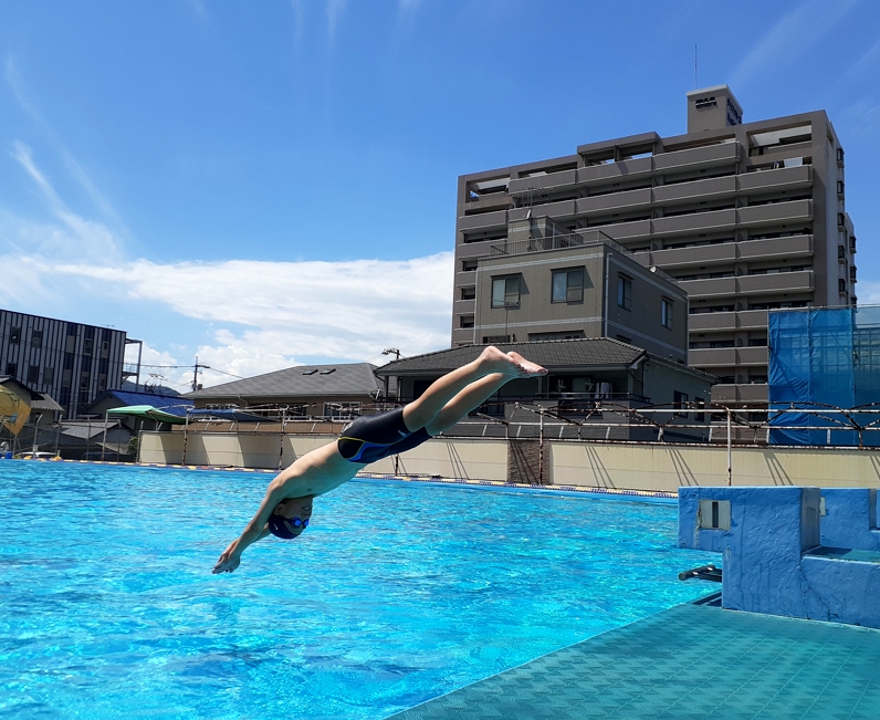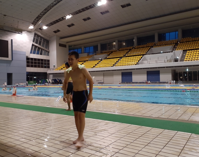 今日は曇りで気温はさほどでもなく……水が冷たいかなぁ~と悩みましたが水泳大会前にもう1度飛込み練習しておきたかったんですよね、もう少し修正できそうな気がしたので。