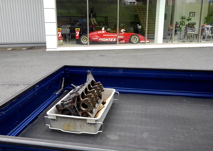 なので午後はクルマを取りに行く必要があると仮定して……まずは自分の14号基のブロックをトダレーシングに持ち込みます。朝9時過ぎに家を出て40分後に到着(距離にして30キロ)