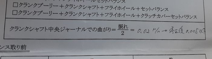 ちなみに修正前が100分の4→曲がりと言うのはその半分なので100分の2になります。ちなみにメーカーの限度値は100分の4、つまり1周回して100分の8の振れまでOKらしいですがそれでブン回すと多分ダメですよ。
