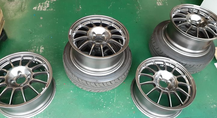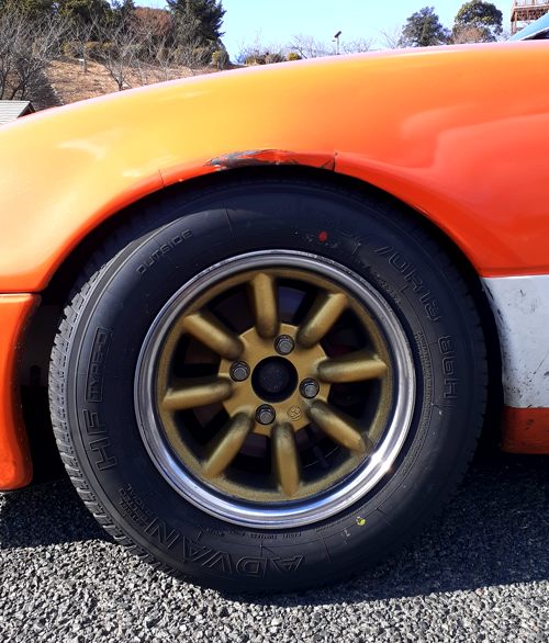 オレンジ号、なんかホイルがちっこいね……ウチにあった土に返りかけた(笑)13インチのワタナベホイルです。私は使う予定も無いのであげました、タダで。欲しそうだったので(笑)