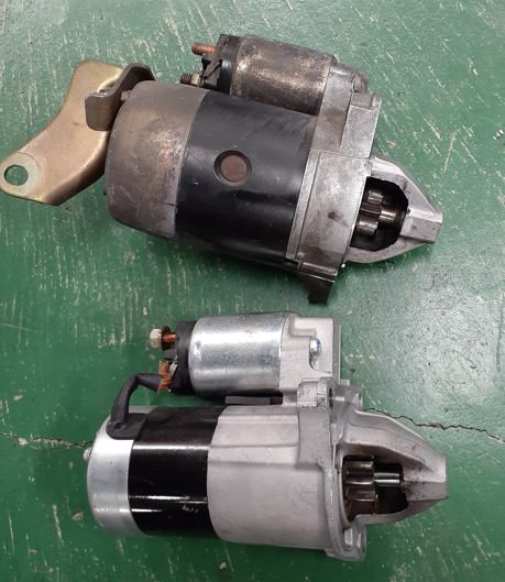 とりあえずスターターを交換、下が装着していたNBリビルト品、まだそんなに使ってないです。で、上が正体不明なNAモノ。とりあえず使ってみる。