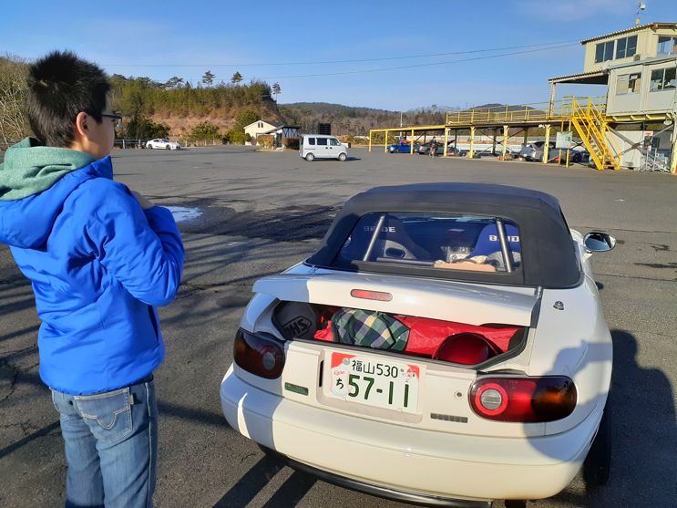 彼も私のNAに試乗、移動用プラグ(5番)なので5千回転くらいまでに抑えてね……と言いつつ。そっから上はオレンジ号の方が速いと思うよ。お互いの意見は似ていて……私のは点火時期が甘い感じかな~ 詰めてないのがモロに出た感じか。言い換えればまだ伸びしろは有りそう。