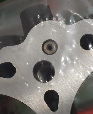 その量を調節しているのがオリフィスですが……純正品はブロックに圧入しているので交換できません。そこで考えたのがヘッド側で穴を絞るということ。