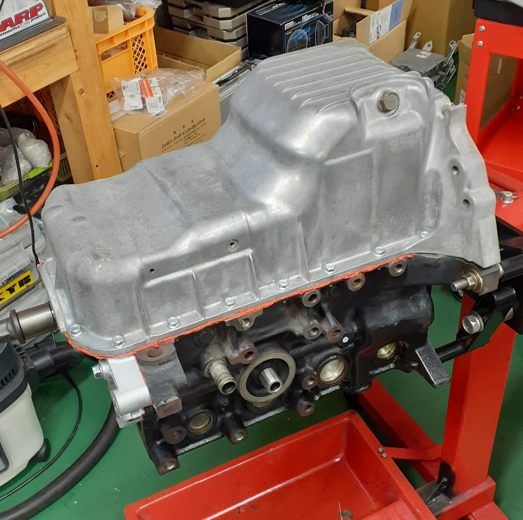 オイルパンとブロックを結合するボルトは新品です、気持ち良いでしょ♪ これで腰下はあらかた完成ですね。次の段階はヘッドとのドッキングですな。
